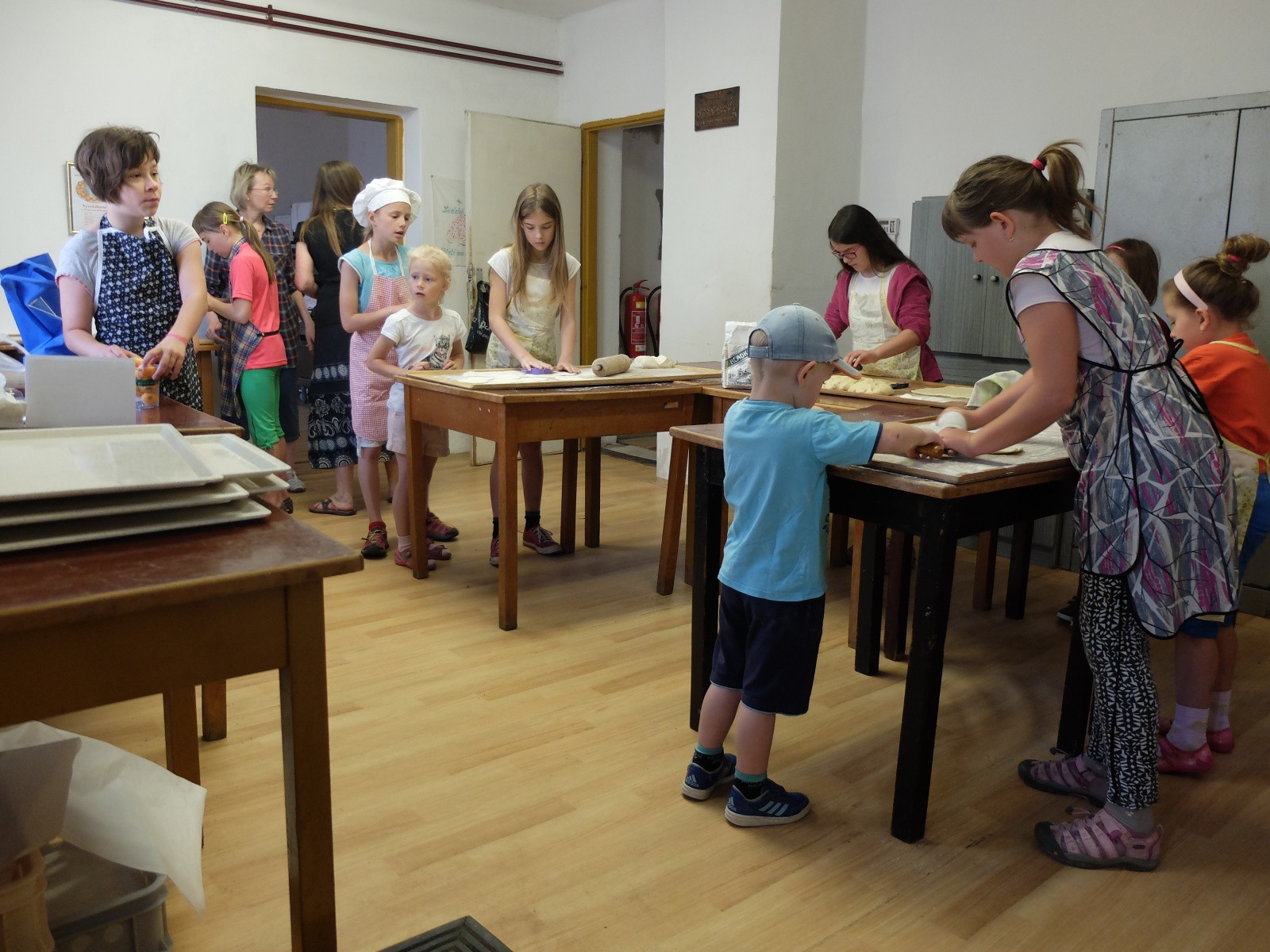 V sobotu 5. května 2018 probíhaly v domečku naproti staré faře přípravy na nedělní kavárnu, jejíž výtěžek byl věnován v duchu hesla „Děti pomáhají dětem“ Papežskému misijnímu dílu dětí (PMDD). Holky, slečny a ženy, které se sešly v domečku, pekly pod odborným vedením štrůdly, buchty, ale i taštičky a to vše s různými náplněmi. Děti se dozvěděly o místech, kde PMDD pomáhá a během pečení se stihly za děti na celém světě také pomodlit. Děti nejen připravovaly těsta, ale krájely ovoce a v neposlední řadě také cukrovaly. Svým pekařským umem přispěly i děti z Olomučan a Ráječka. V neděli na misijní farní kavárně pak měli všichni přítomní možnost vše ochutnat. Děti nejen vše upekly, nakrájely a připravily na talířky, ale nachystaly i nápoje a podílely se na závěrečném úklidu.
