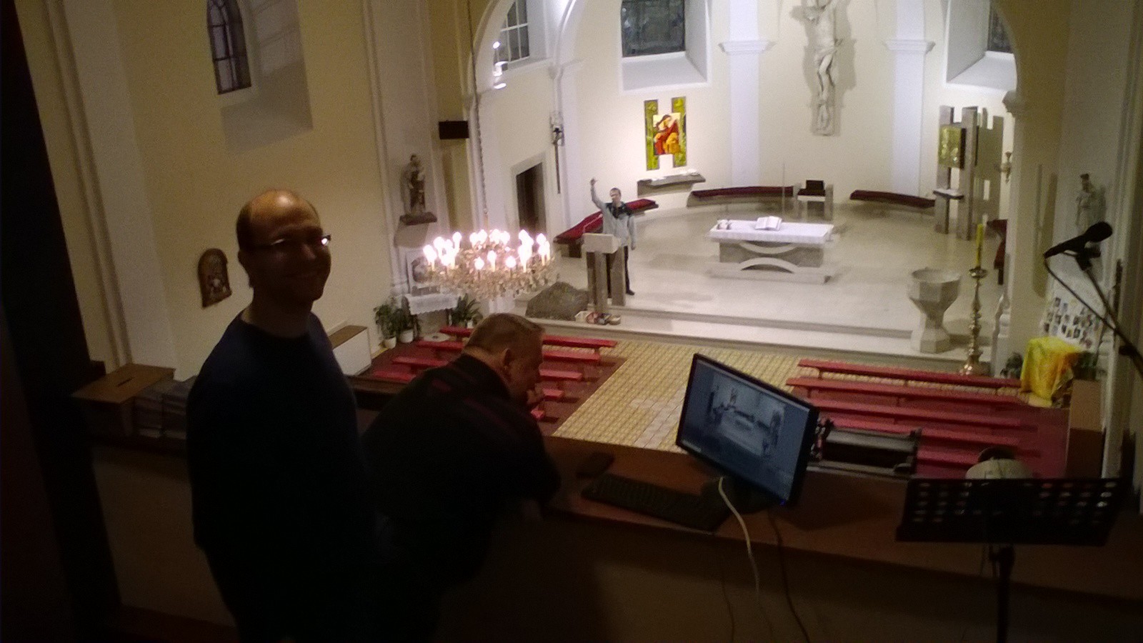 Ve čtvrtek 12.3.2020 proběhla příprava kostela na jeho uzavření pro veřejné bohoslužby a na jejich on-line přenosy. Počítáme s nimi od pátku 13.3.2020 a zahrneme do nich večerní bohoslužby ve všední dny a obě nedělní. Velký dík za instalaci zařízení a přenos signálu patří J. Šebelovi (Alfservis Blansko), M. Dyčkovi a V. Mrázkovi!!