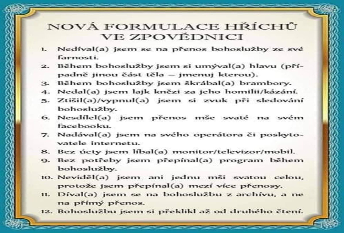 ale lepší zatím něco, než stále nic. Papež František totiž při kázání 17.4. upozornil, že církevní společenství se nikdy nemůže tvořit virtuálně, ale je potřeba je co nejdřív obnovit a prožívat doopravdy.