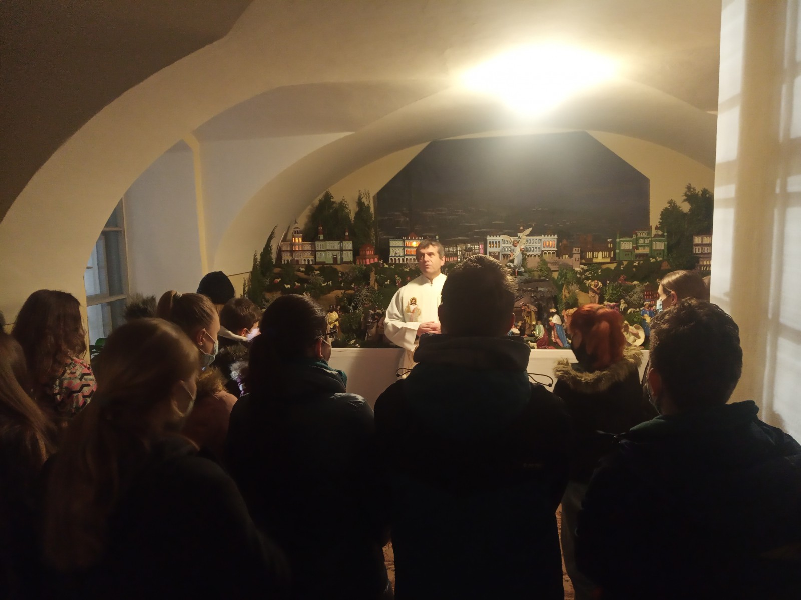 Školáci i mládež ze všech se sejdou jednou za měsíc ke mši svaté. V lednu to bylo u kostelního Betléma.