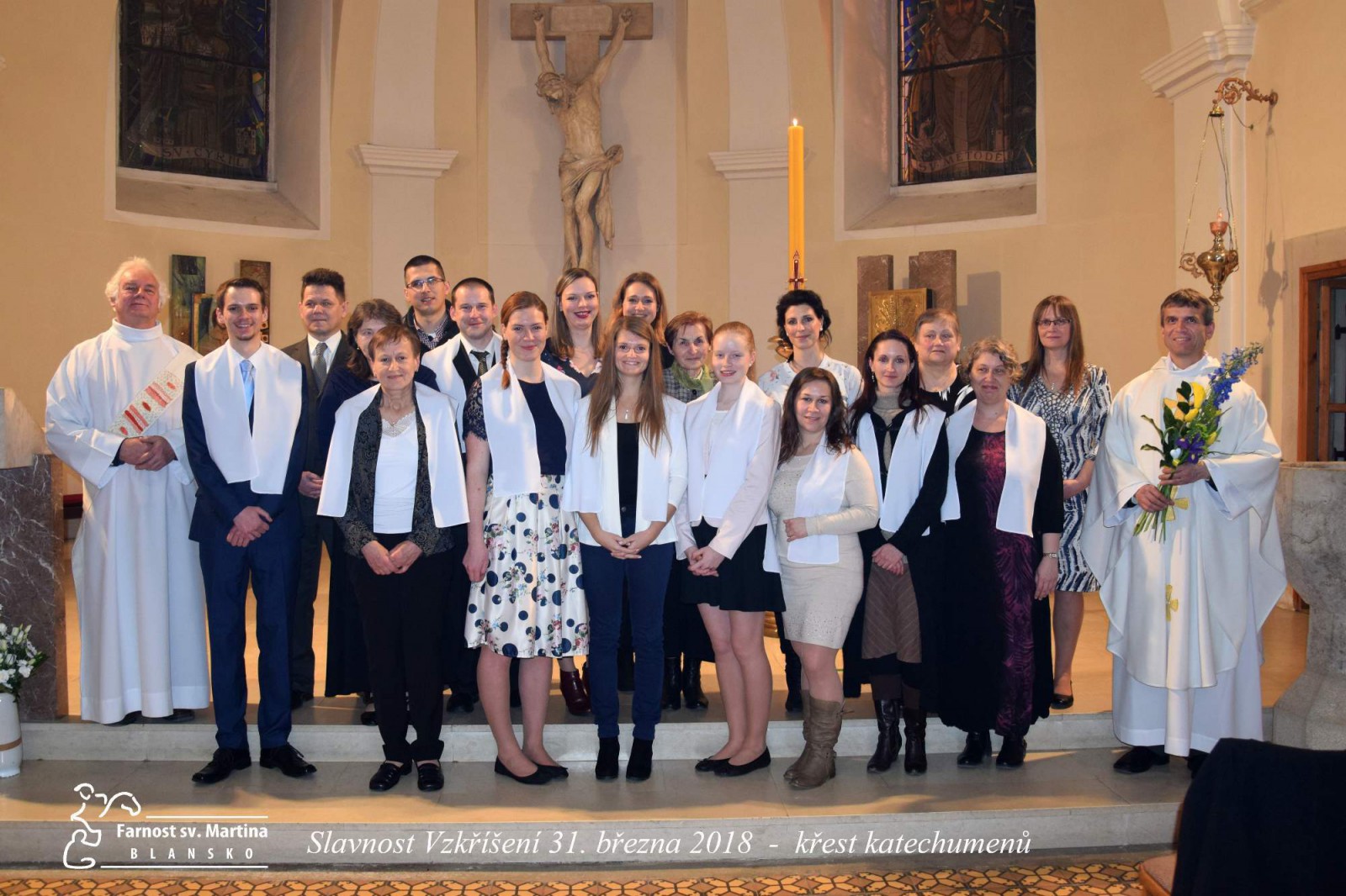 Letošní velikonoční vigilii jsme prožili ještě ve větší radosti než obvykle. Katechumeni z naší farnosti přijali svátost křtu a poprvé také svaté přijímání. Na tento den se pod vedením Otce Jiřího a jáhna Oldřicha připravovali dva roky. Jsme vděční za rozrůstání naší farní rodiny, všem přejeme, aby se v církvi cítili vždy dobře a vyprošujeme jim Boží požehnání.
