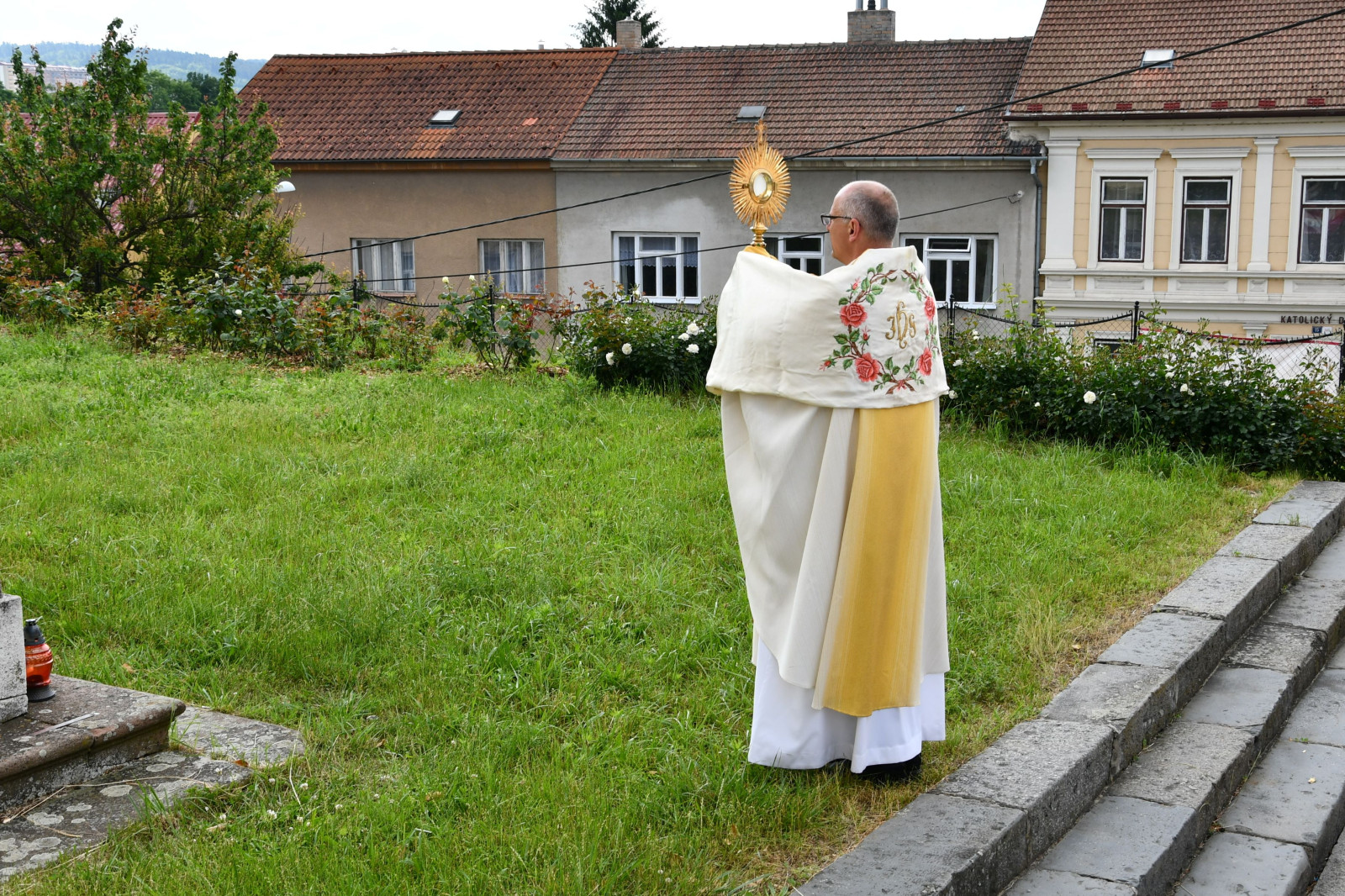 Slavnost Těla a Krve Páně je spojena s úctou k eucharistii a mše svatá se slaví venku v areálu farního dvora. V letošním roce byla její slavnostnost podtržena ordináriem Z. Pololáníka v podání sboru a KOMB, dirigoval Dominik Pernica. Nechyběly družičky v bílém, které během eucharistického průvodu sypaly květy na zem. Vznikl nádherný „květinový koberec“ pro Krista přítomného v eucharistii. Součástí eucharistického průvodu bylo také požehnání, přání dobra a Kristovy přítomnosti, celému městu Blansku.