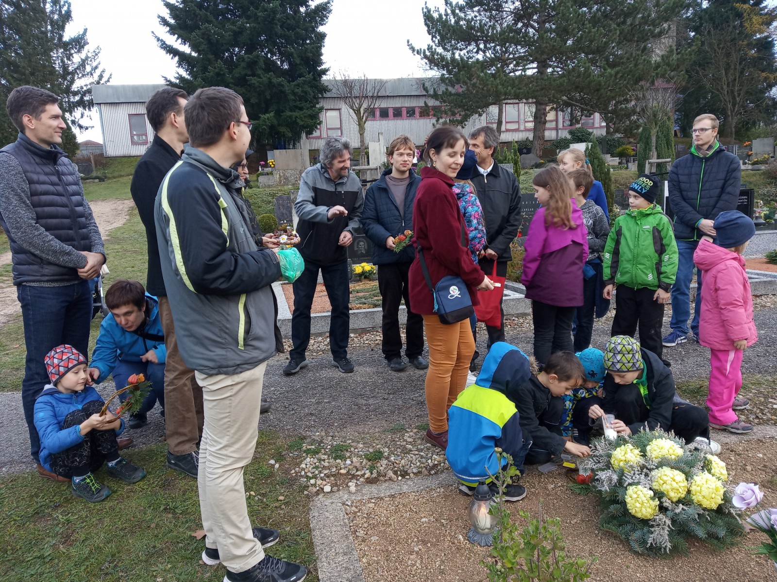 Po ukončení oficiální akce následovala modlitba u hrobů zesnulých naší farnosti. Té se zúčastnila nejen mládež a děti, které byly obzvláště pozvány, ale i řada dospělých farníků, díky čemuž jsme utvořili krásné mezigenerační společenství. Dušičkové věnce, které se společně se zapálenými hřbitovními svícemi kladly na hroby, byly vytvořeny dětmi z náboženství, včelařského kroužku a také ministranty.