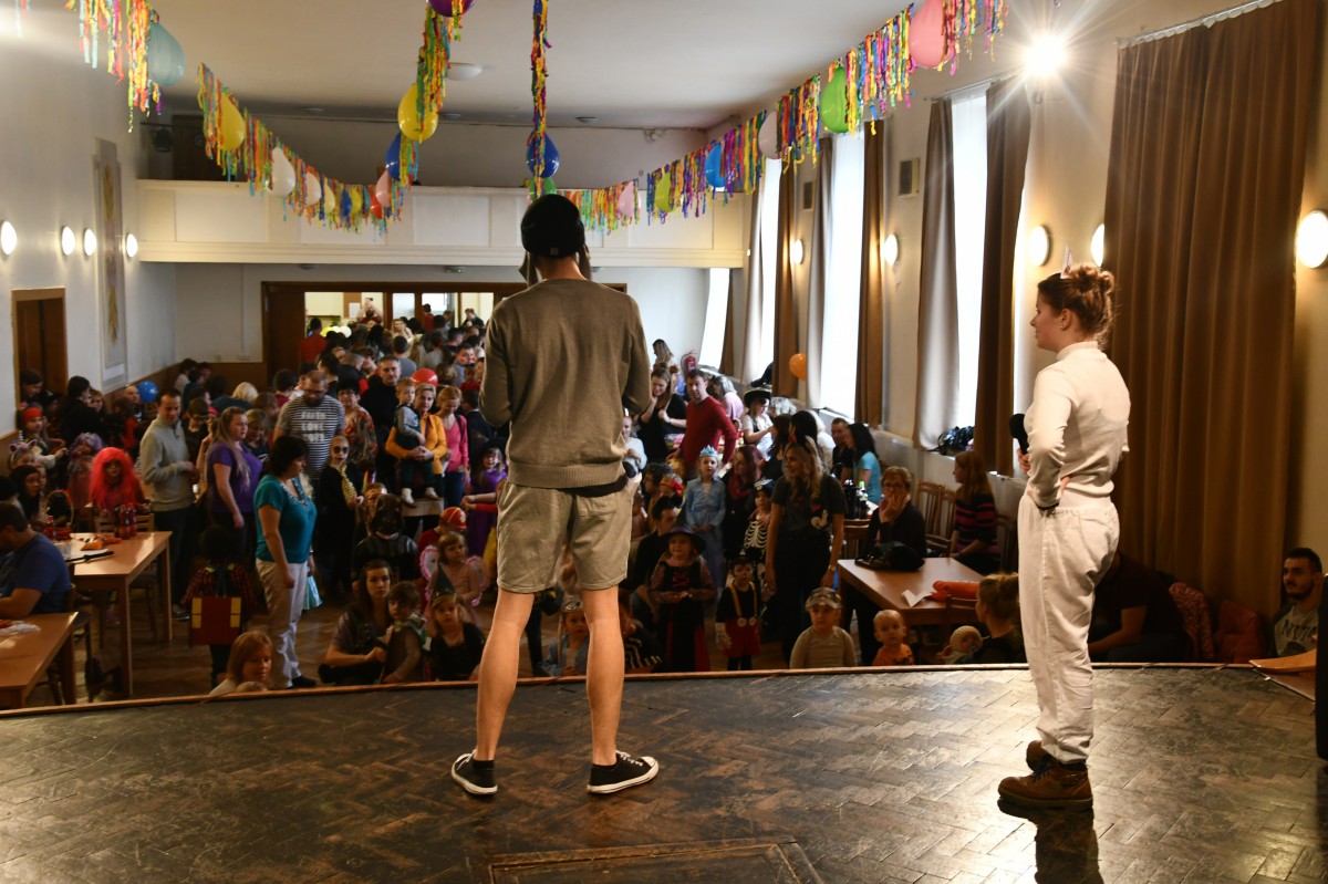 Šikovní loňští moderátoři, tentokrát v roli pejska a kočičky, přivítali jak všechny farníky, tak i přespolní, kteří na karneval zavítali. Tato akce je otevřena široké veřejnosti, která má tak možnost poznat Katolický dům i vedoucí kroužků z Kolpingovy rodiny. Ti se pro toto odpoledne proměnili v animátory her na podiu, nebo v milou obsluhu v dětském baru plném dobrot. Nesmíme také zapomenout poděkovat dorůstající mladé generaci, která se ujala her v přísálí.