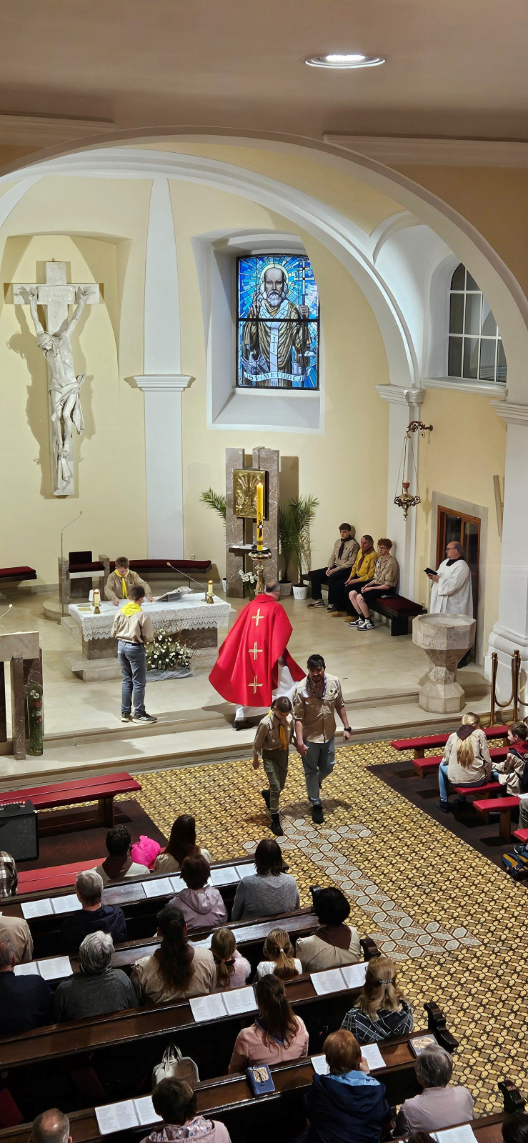 Svatý Jiří je patronem skautů, a tak se skauti ze všech blanenských středisek setkali k slavení liturgie ve farním kostele.