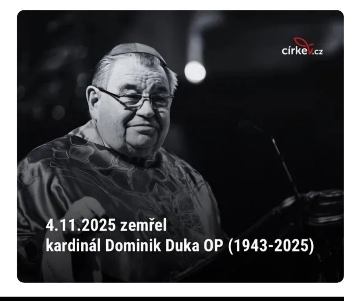 úterý 4.listopadu byl ve tři hodiny ráno Pánem života povolán na věčnost ve věku 82 let kardinál Dominik Duka OP, emeritní pražský arcibiskup. Pohřební mše svatá se uskuteční v sobotu 15. listopadu v 11.00. v katedrále sv. Víta, Václava a Vojtěcha.